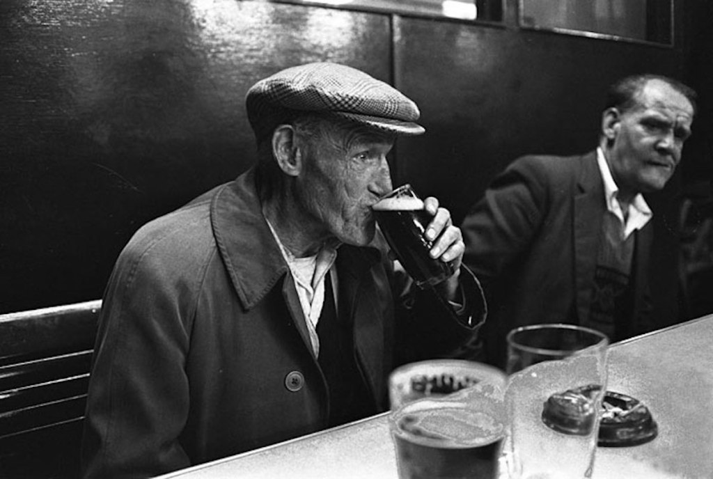 in a worn out coat,